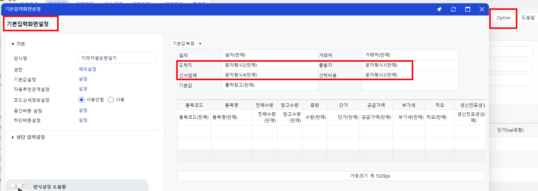 3. 거래처별운행일지, 차량별운행일지 작성 화면 설정