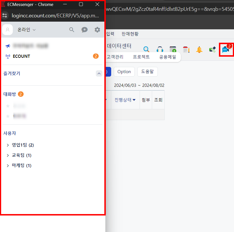 회사내부에서 카카오톡 등 외부 메신저 프로그램에 대한 사용의 거부감이 있는 경우 또는 사내 메신저에 대한 관리가 필요한 경우에 이카운트 기능도 유용하게 사용될 수 있습니다.