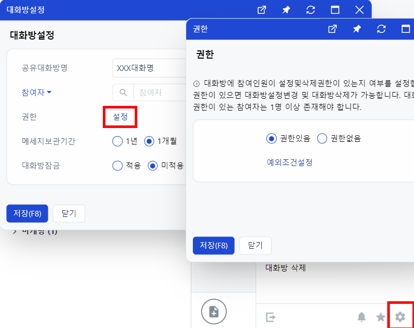 대화방을 만들고 나서도, 메신저 방에 대한 설정을 할 수 있습니다.