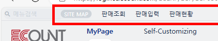 즐겨찾기만 사용하고 저장을 클릭하면, 아래의 사진처럼 이카운트 상단에 메뉴 이름이 표기가 됩니다.